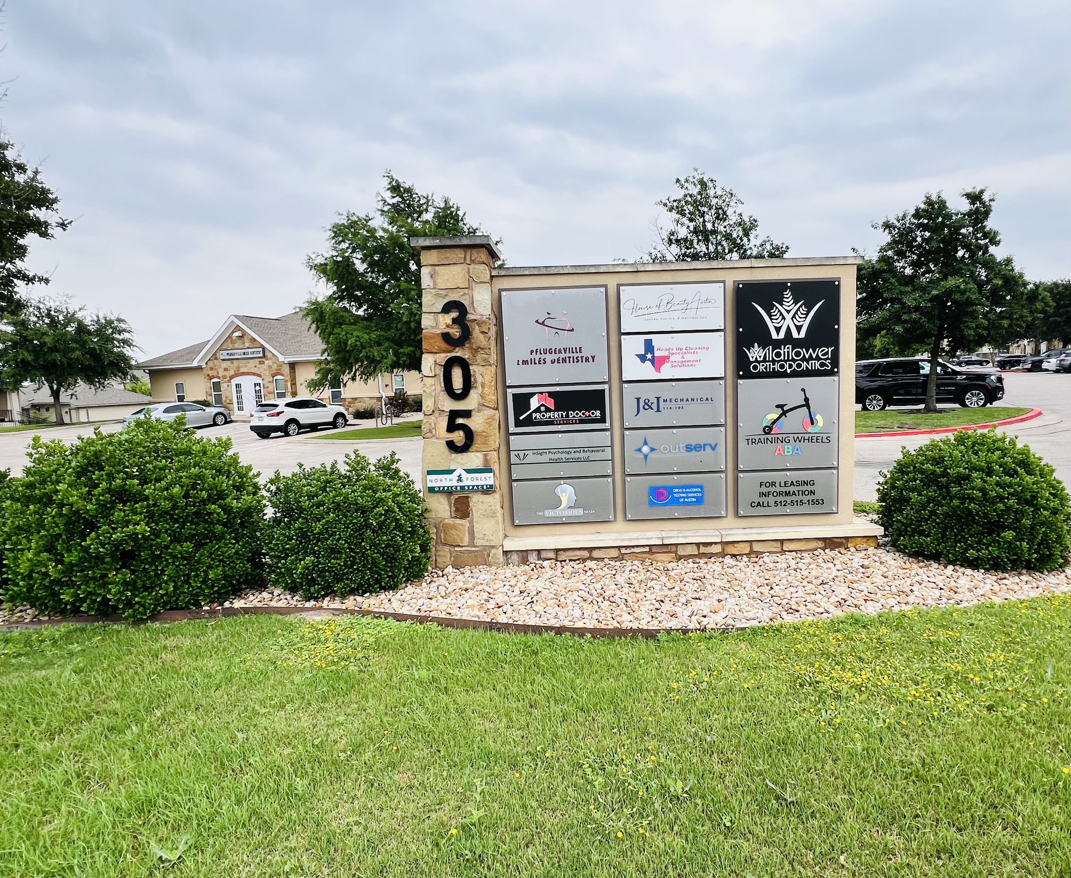 This office park is located in the heart of Pflugerville, just 5 minutes from I-35 • Shops at Tech Ridge and Stone Hill shopping centers are both within 5 miles of the office park, providing a variety of shopping and dining choices